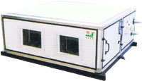 安装于吊顶内,高度小于670mm,广泛用于商场、影视厅、银行、宾馆等场合,作一般空调送风或新风系统。 |